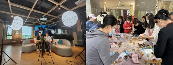 长春营销管理中心副总经理做客直播间(左)  “月圆中秋 情满家园 ”中秋节社区文化活动(右)